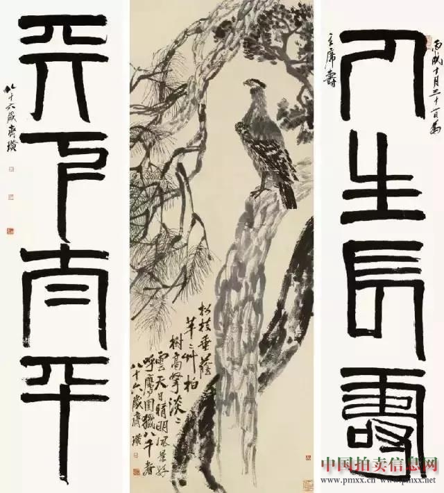 2、齊白石《松柏高立圖·篆書四言聯(lián)》2011年嘉德春拍 4.255億元