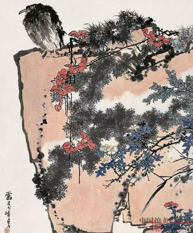 4、潘天壽《鷹石山花圖》2015年嘉德春拍 2.79億元