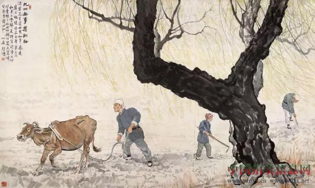 《九州無事樂耕耘》是一幅農(nóng)耕題材的作品,這種人與動物相結(jié)合的宏幅巨制在徐悲鴻的創(chuàng)作精品中是極為罕見的。1951年郭沫若在莫斯科被授予“加強(qiáng)國際和平斯大林金質(zhì)獎?wù)隆?。徐悲鴻獲悉后,抱病為郭沫若繪制了這件150×250cm的宏幅巨制。作品含有巧妙的用意;郭徐二人同為儒臣,卻同樣有顆為國民奔走呼號的文人俠客之心,以此砥礪,共同為建設(shè)新中國盡自己的微薄之力, 這幅作品是徐悲鴻與郭沫若兩位近現(xiàn)代文化名人深厚友誼的見證。