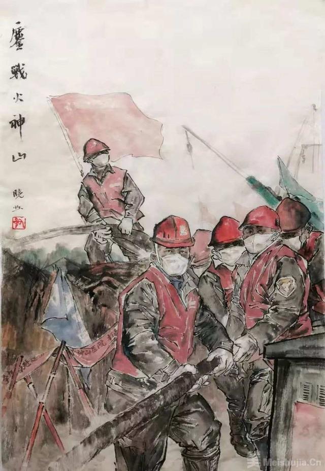 中國畫《鏖戰(zhàn)火神山》作者:謝曉虹